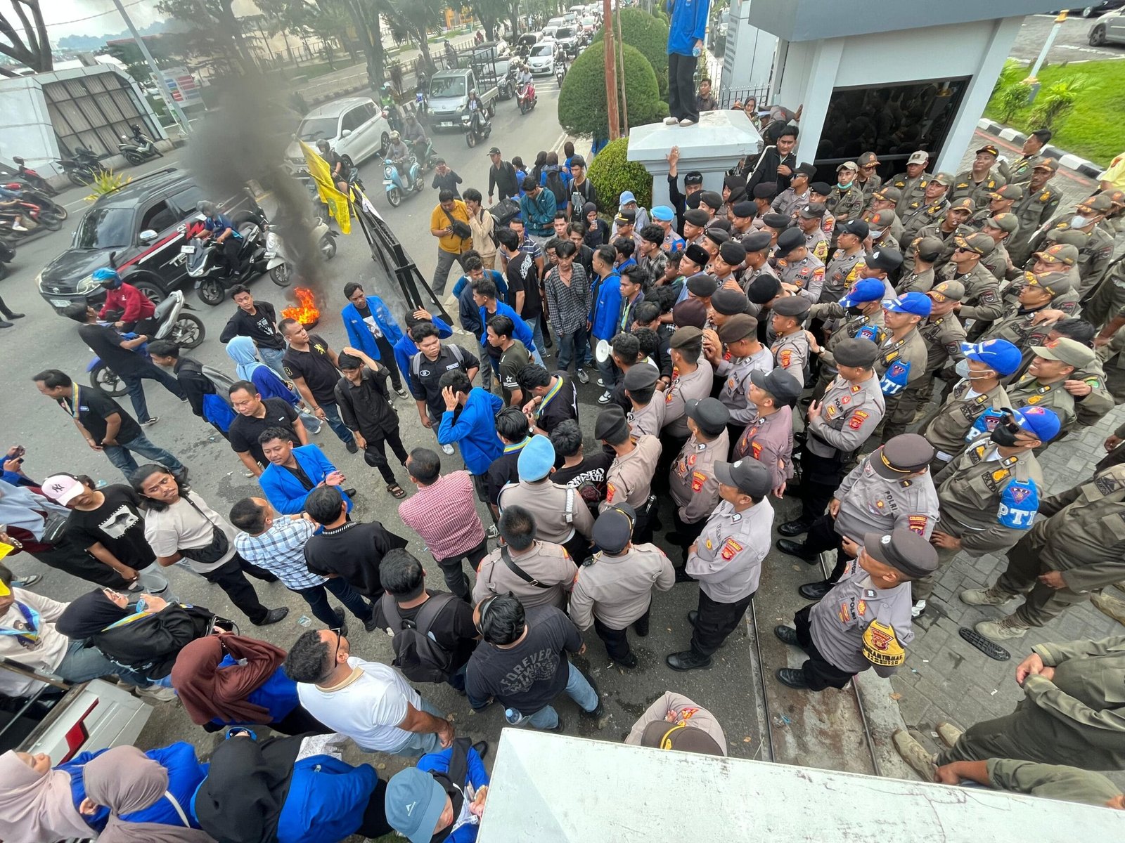 Aksi yang semula berjalan tertib itu sempat memanas hingga berujung kericuhan. Namun, situasi akhirnya dapat dikendalikan oleh aparat yang berjaga di lokasi. (*)