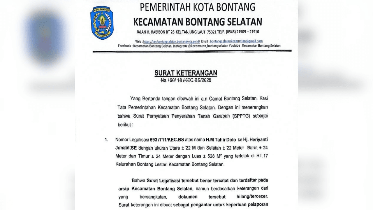 NIUS.id – Telah hilang sertifikat tanah SLBN Bontang, beralamat di RT.17, Kelurahan Bontang Lestari Kecamatan Bontang Selatan.