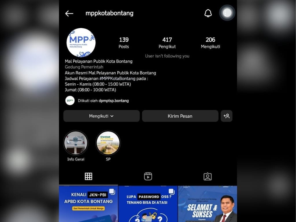 Sebelumnya, akun Instagram MPP nyaris tidak berkembang. Unggahan jarang diperbarui dan sebagian besar berupa repost tanpa identitas visual yang jelas. Situasi itu membuat MPP kurang dikenal meski menjadi pusat layanan publik dari berbagai instansi di bawah koordinasi DPMPTSP.