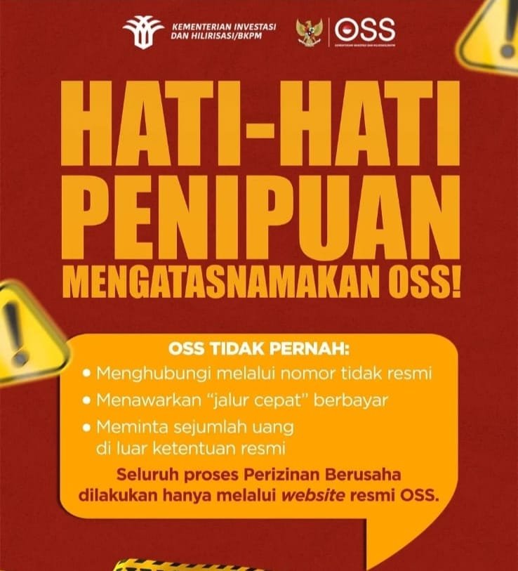 DPMPTSP Kota Bontang mengingatkan masyarakat dan pelaku usaha untuk lebih waspada terhadap maraknya penipuan yang mengatasnamakan layanan perizinan OSS. Foto: Istimewa