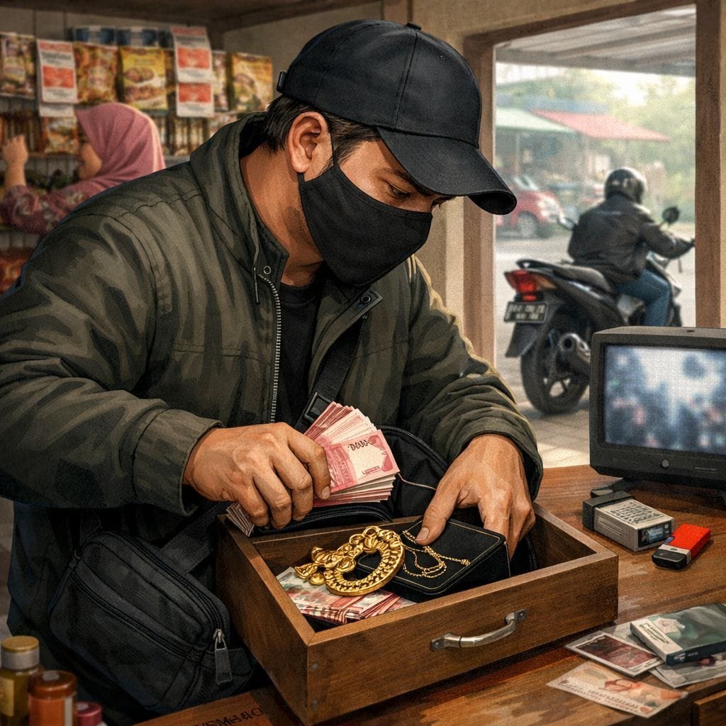 Pelaku menjalankan aksinya dengan tenang dan terencana. Ia berpura-pura berbelanja, lalu berulang kali meminta barang tambahan di lokasi berbeda dalam warung. Tanpa disadari, strategi itu membuat korban terus menjauh dari tempat penyimpanan uang dan barang berharga.