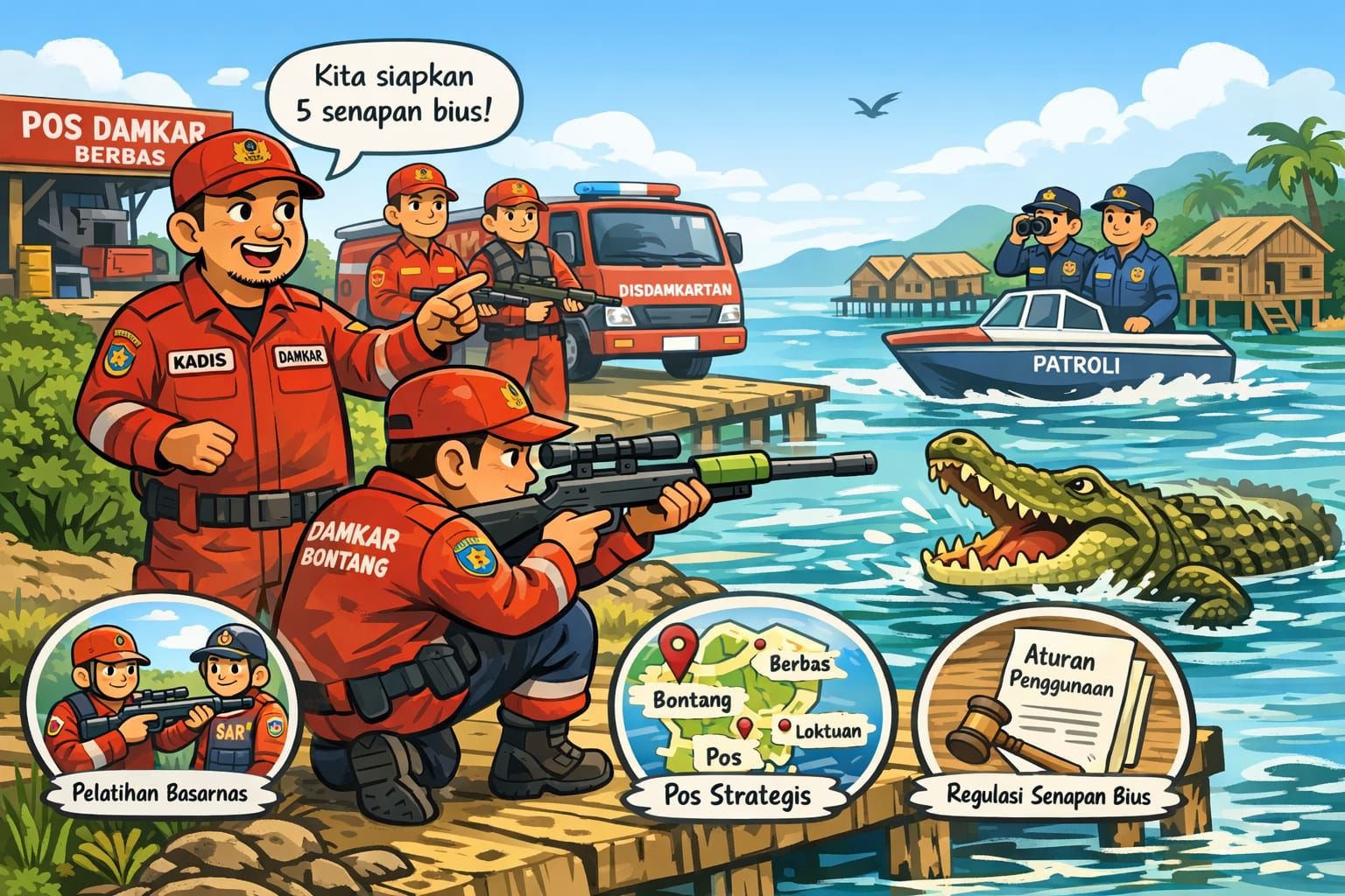 Menurutnya, keberadaan senapan bius akan membuat proses penanganan buaya lebih aman karena petugas dapat melakukan tindakan dari jarak jauh tanpa harus mendekati satwa tersebut.