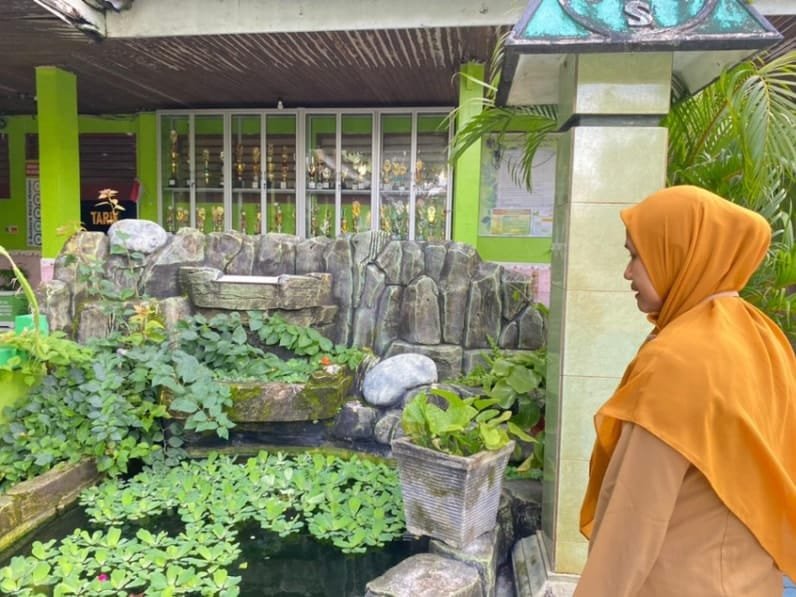 Kolam ikan yang dibangun di sudut lapangan sekolah kini menjadi salah satu alat belajar interaktif bagi siswa. Melalui kolam tersebut, murid dapat mempelajari berbagai hal, mulai dari jenis-jenis ikan, tanaman air, hingga memahami konsep ekosistem dan volume air yang dibutuhkan agar ikan bisa hidup dengan baik.